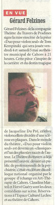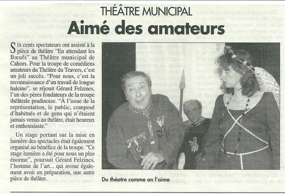 Gérard Felzines, le rôle titre de la pièce et Alain Thoquenne, le metteur en scène que nous avons rencontrés s’accordent pour dire «qu’ils ont apprécié