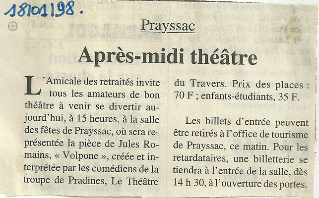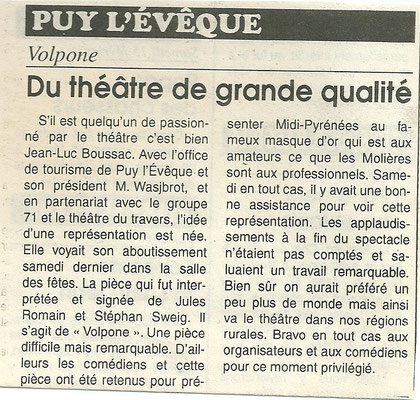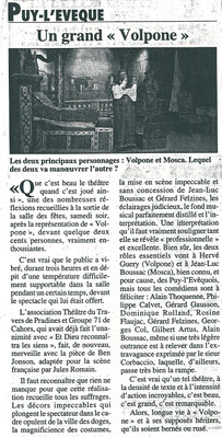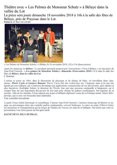 suite à la représentation du 10/10/2018 au Théâtre de CAHORS