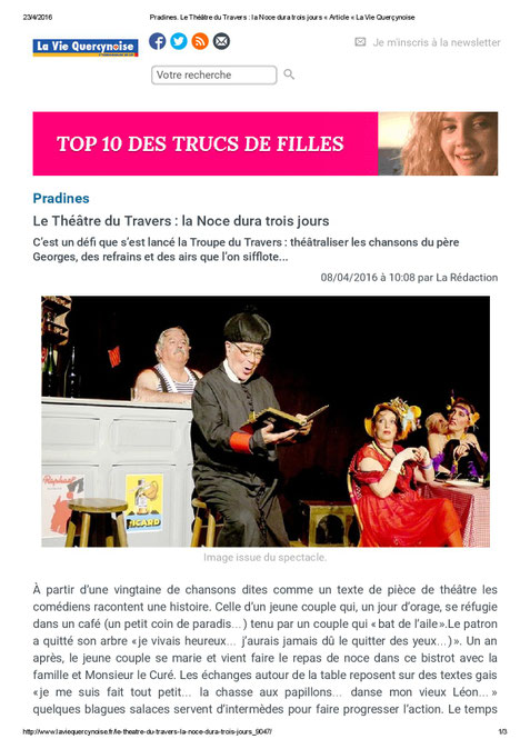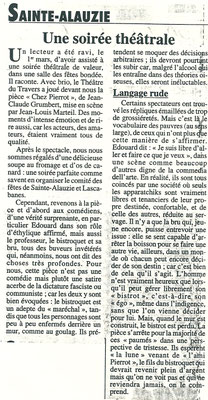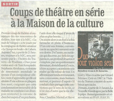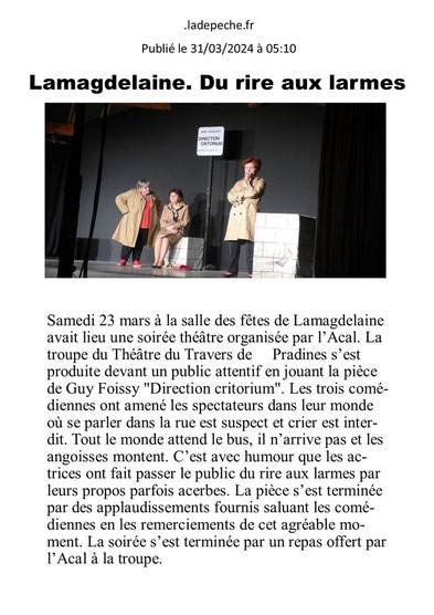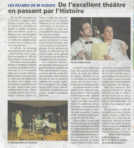 Samedi soir, la très active troupe amateur lotoise le Théâtre du Travers a présenté la pièce