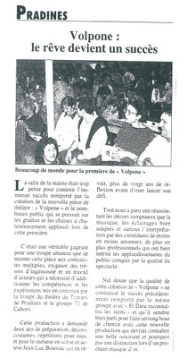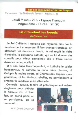 Spectacle réussi, avec une mise en scène de Laurent Busson. Cette pièce offerte par la CCCSS, a été honorée par