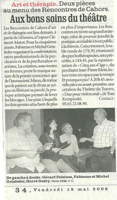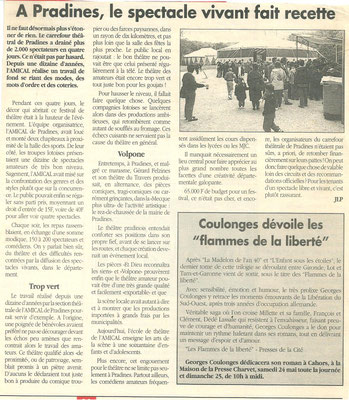 Nicolas Quèbre, Claudine Imbert, Gérard Gausson, Gérard Felzines, Stéphanie Baldy-Calvet, Bernard Labro ont offert, à une salle comble, un spectacle de haute qualité. Une pensée, bien sûr, pour