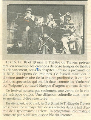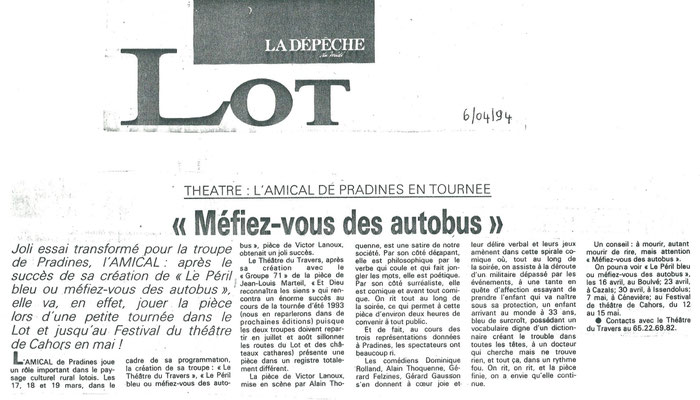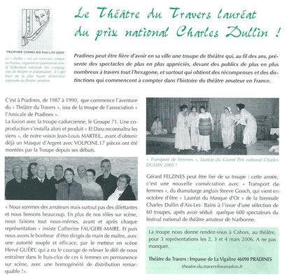 Depuis sa création en 1987, le Théâtre du travers de Pradines multiplie les pièces, les représentations et les récompenses.