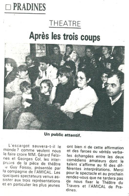 Du beau théâtre, des acteurs à fond dans leur rôle et un public de plus de 70 personnes ont fait de cette soirée un grand moment de détente.