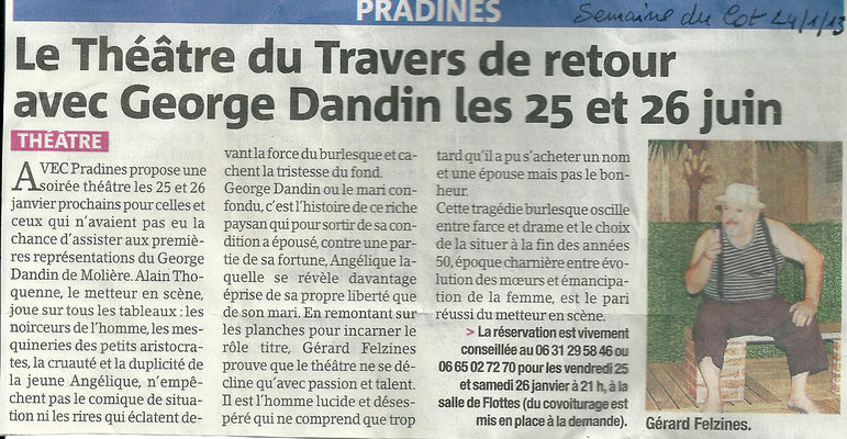 «George Dandin ou le mari confondu» de Molière à la salle polyvalente deSaint-Pierre-Lafeuille. Une soixantaine de personnes s'est pressée pour apprécier le jeu des acteurs.
