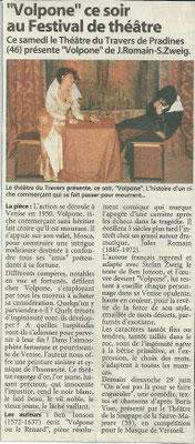 futur nobélisé, afin de les inciter à davantage de résultats. La troupe a fait mieux que se défendre et a produit un petit bijou de finesse et de drôlerie, chaque acteur se mettant au diapason