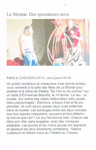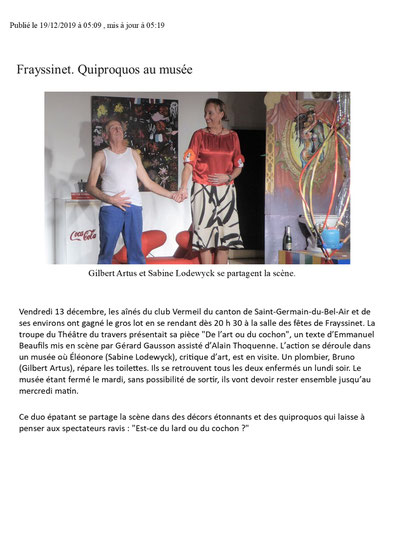 performance est remarquable. 2 autres représentations sont programmées sur le weekend. Un grand merci à tous pour votre contribution à la vie culturelle de notre commune.
