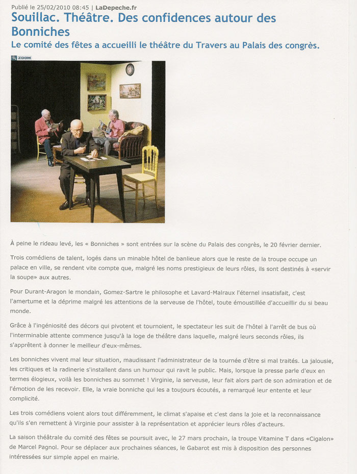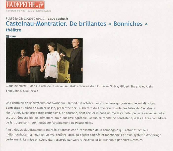 mercredi 10 octobre à Cahors,voir votre pièce. C'est tout simplement remarquable avec des acteurs qui sont extraordinaires. Les acteurs choisis correspondent parfaitement aux personnages qu'ils